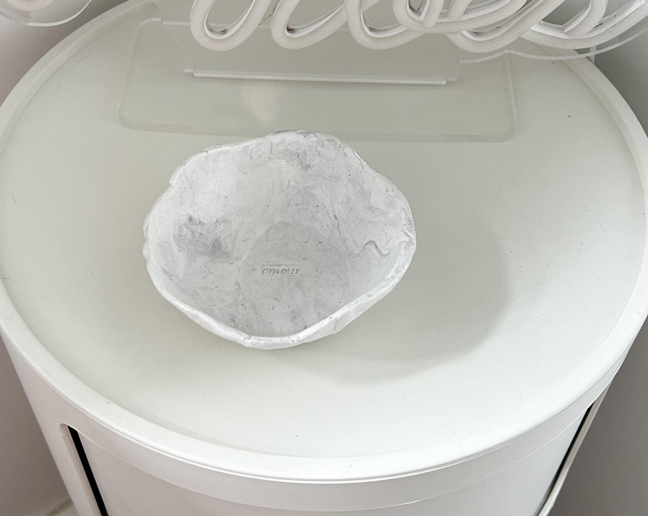 Confectionnée à la main en Alsace, la coupelle Amour est conçue avec de l’argile auto-durcissante, parfaite pour y placer vos petits trésors. Création artisanale unique, au design minimaliste.
