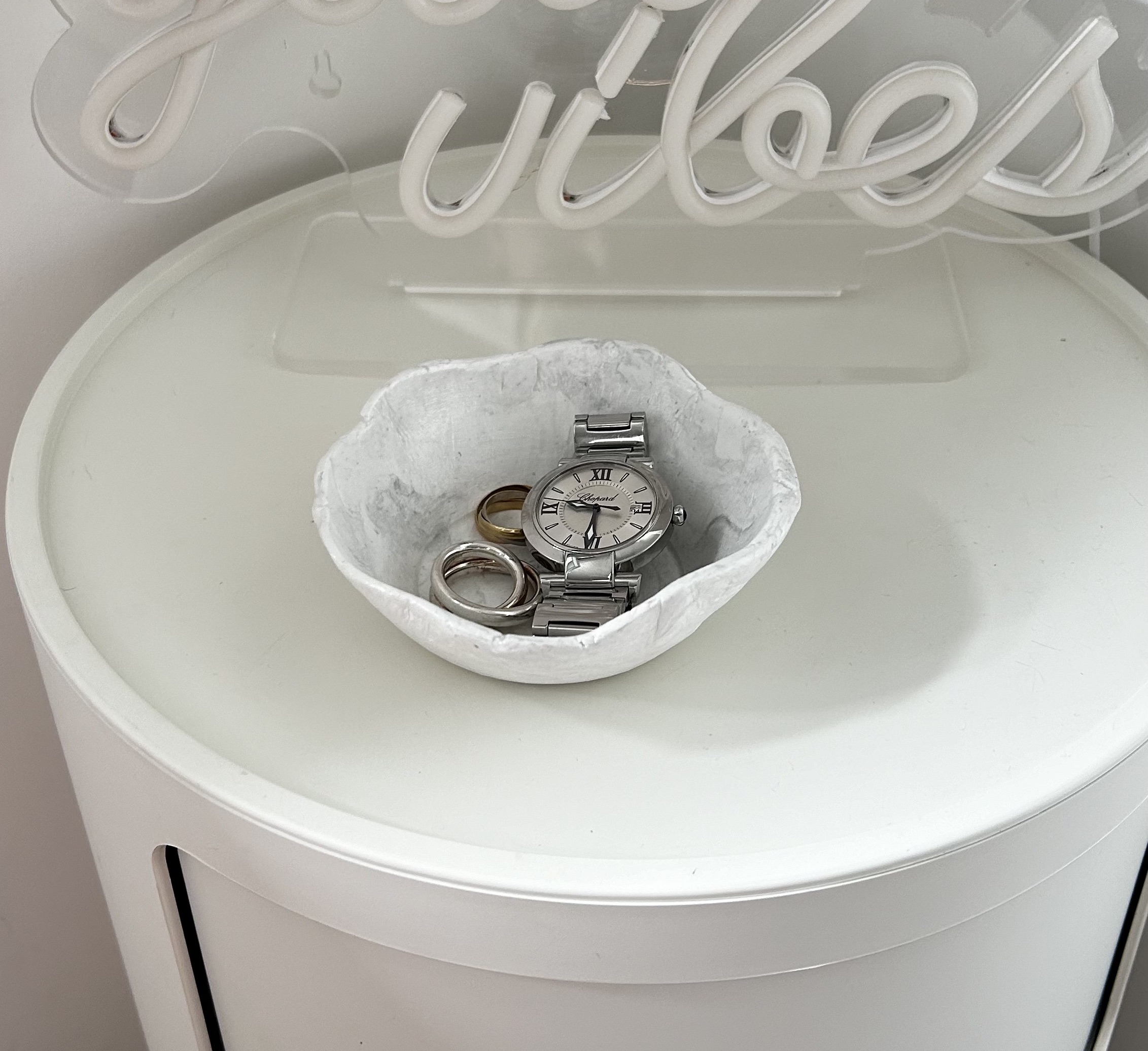Parfaite pour ranger vos bijoux, clés ou petites pièces, cette coupelle Amour trouve aussi sa place comme accessoire décoratif minimaliste sur une console, une étagère ou une table de nuit.