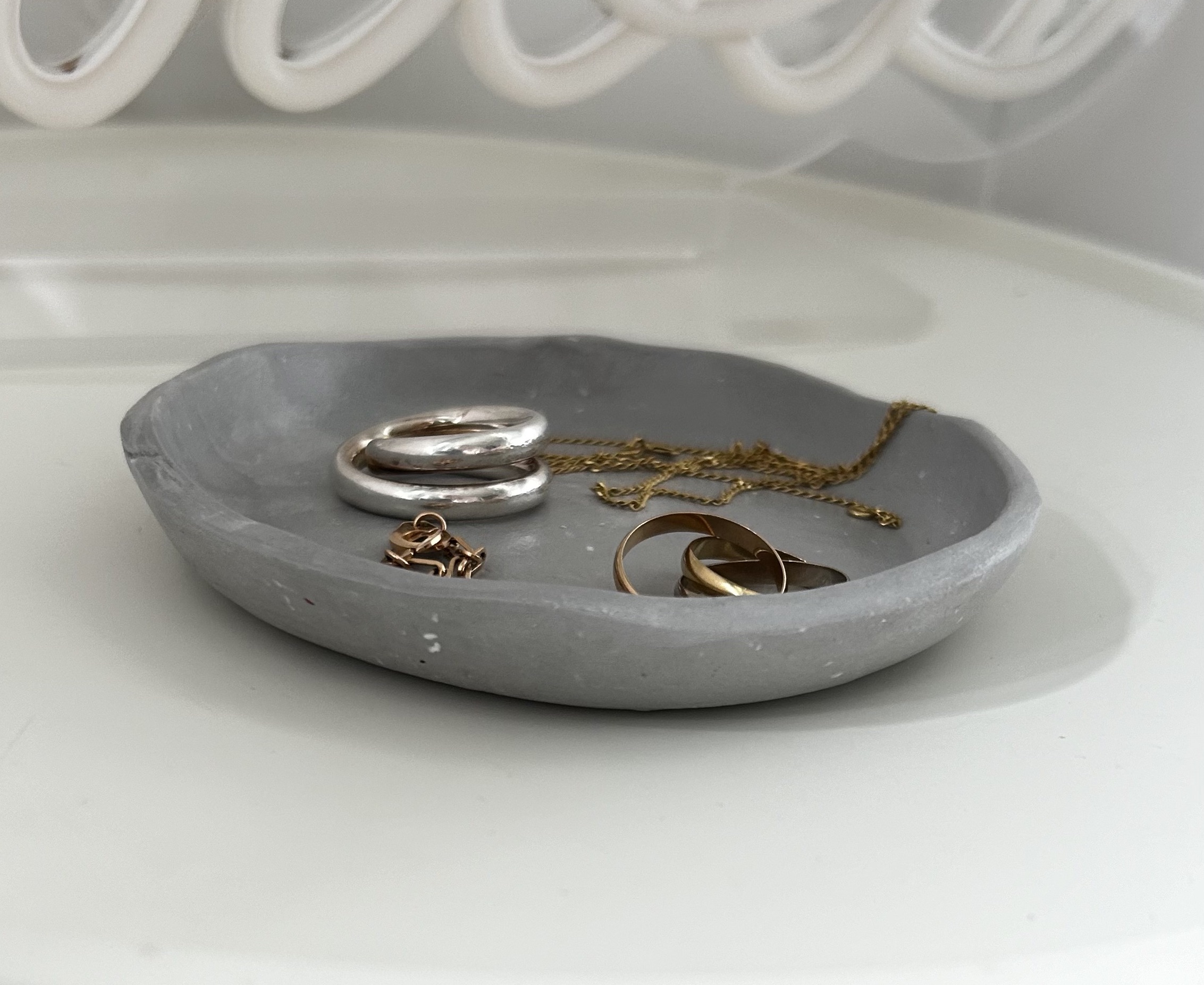 Coupelle Dionysos en argile auto-durcissante faite main en Alsace, parfaite pour y déposer des bijoux. Création artisanale unique, au design minimaliste.