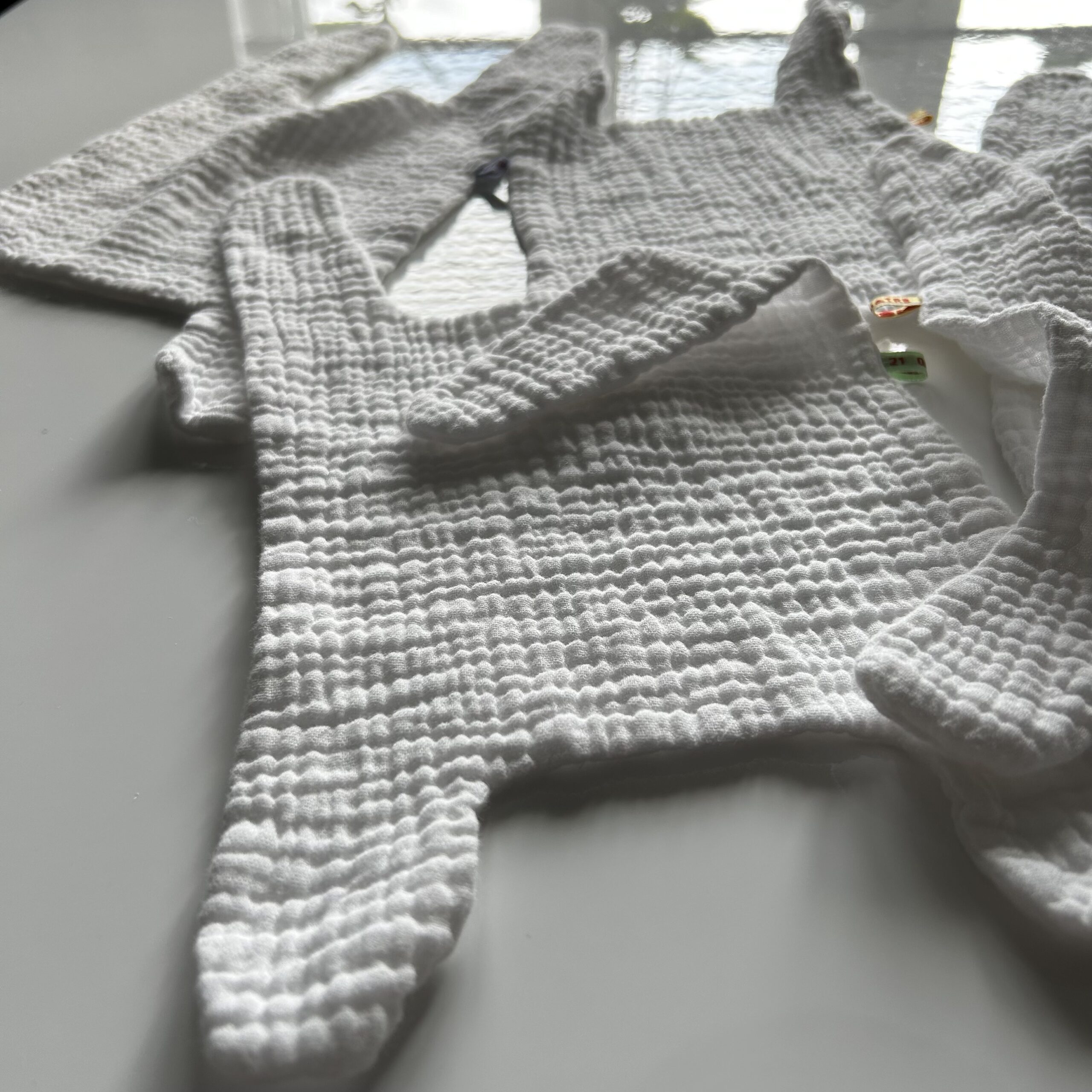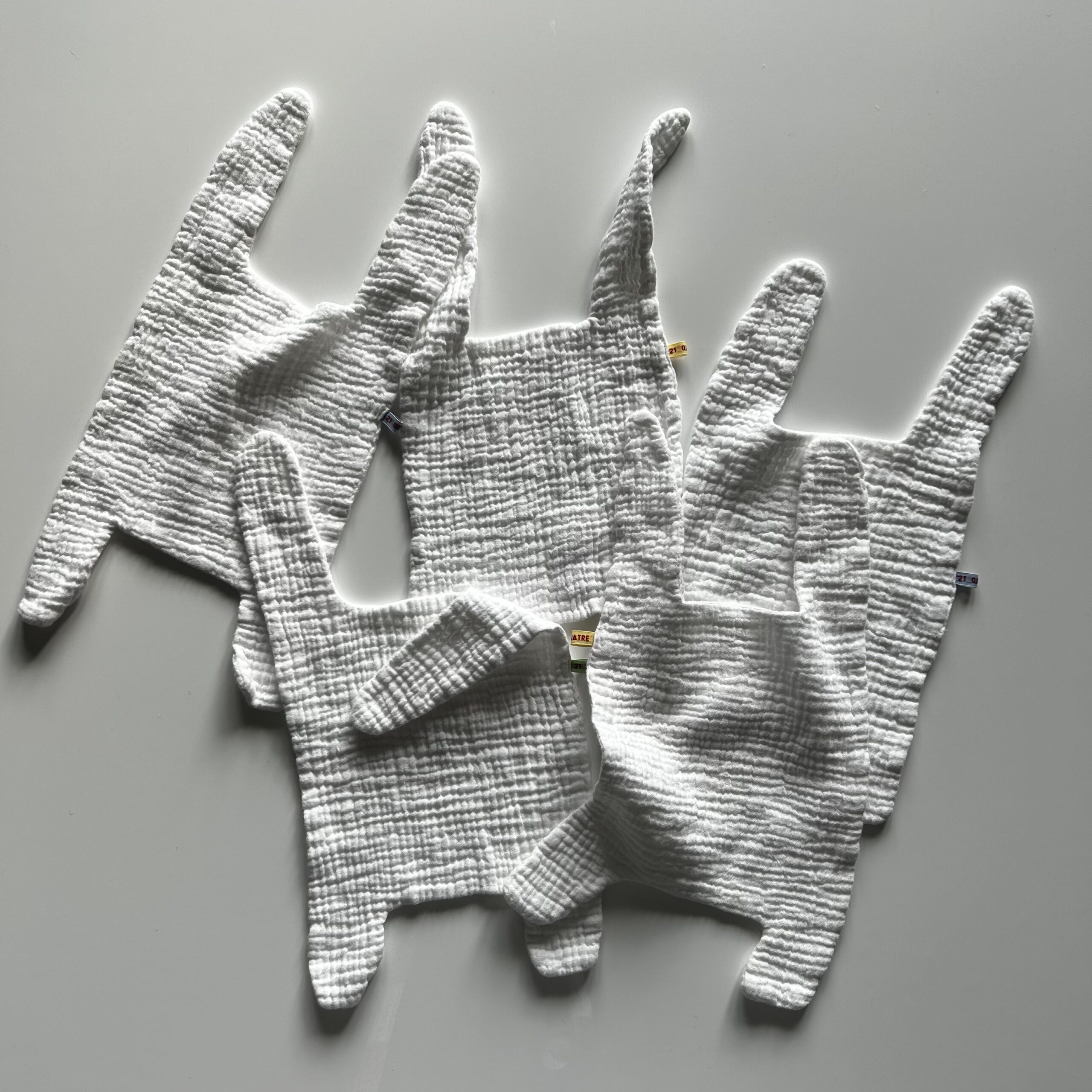 Apportez à votre bébé un compagnon tout en tendresse avec le doudou Izach, une création artisanale en forme de lapin. Confectionné à la main en 100 % gaze de coton douce et respirante, ce doudou offre un toucher délicat et un confort optimal pour apaiser votre tout-petit.
